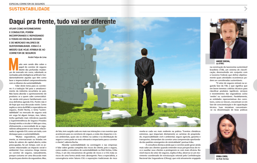 Publicada na edição #313, em outubro, a matéria analisa as transformações estruturais em curso no mercado de seguros, impulsionadas pela digitalização, pelo avanço da inteligência artificial e, principalmente, pela consolidação da agenda ESG. Nesse contexto, o papel do corretor de seguros passa por uma redefinição profunda e irreversível. Além disso, a reportagem destaca que esse novo cenário exige do corretor o desenvolvimento de novas competências, visão de longo prazo e alinhamento estratégico com um mercado que já não admite a dissociação entre desempenho econômico, responsabilidade socioambiental e governança corporativa.